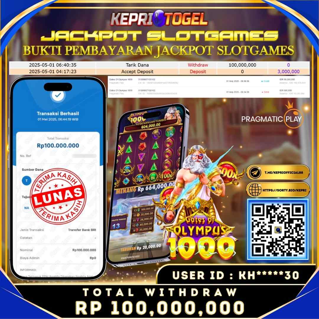 Selamat kepada UserId KH*****30 telah berhasil mendapatkan kemenangan jackpot pada permainan Slot Gates OF olympus 1000 Kepritogel sebesar Rp100,000,000,- . Kepritogel situs terpercaya sejak dulu hingga saat ini , Untuk kemenangan berapapun pasti akan kami bayarkan . Jangan ragu bermain di Kepri Togel . Kami pihak Kepritogel Menyampaikan terima kasih kepada seluruh member Kepri Togel yang telah Percaya dan setia Bersama kami bermain di Kepritogel hingga saat ini.