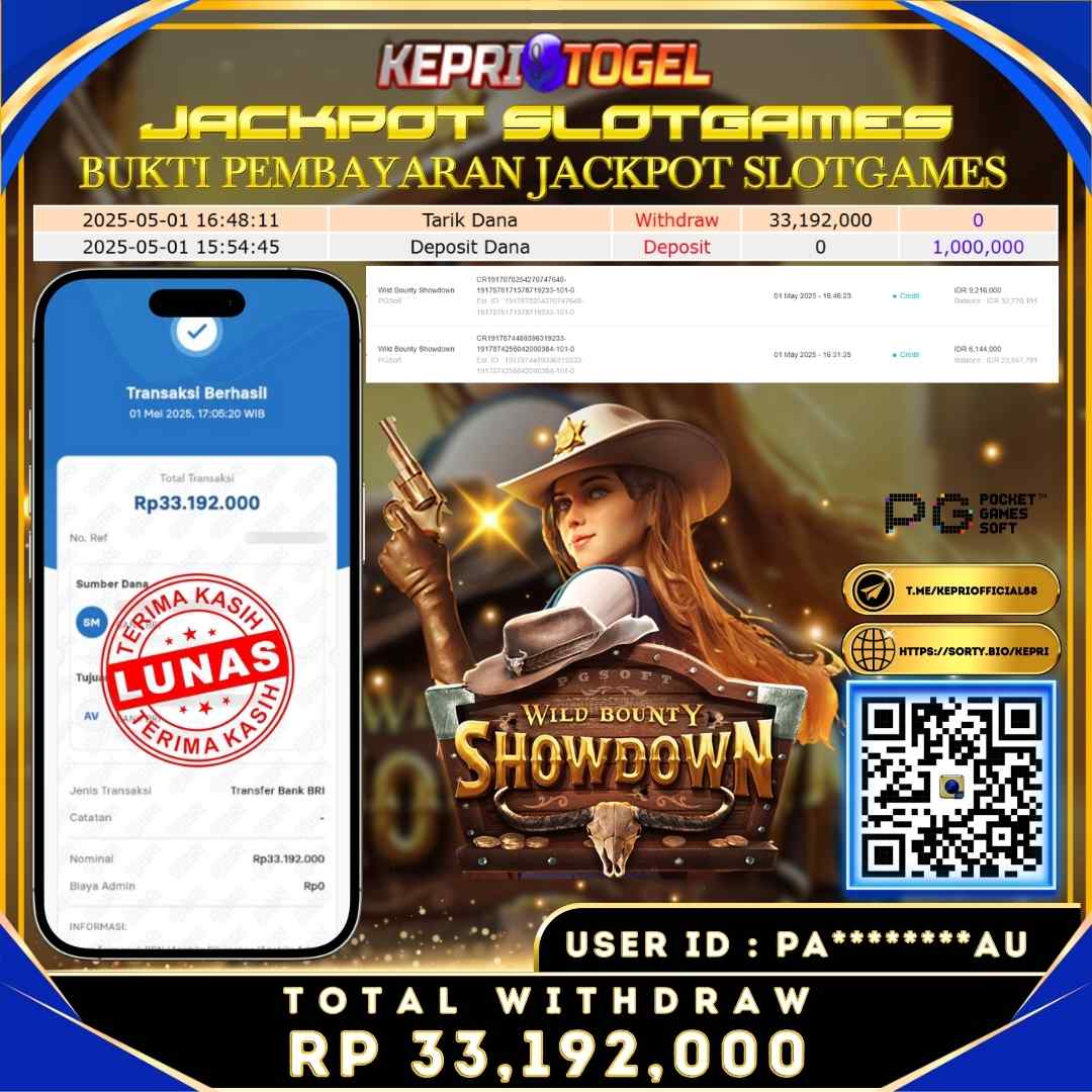 Selamat kepada UserId PA********AU telah berhasil mendapatkan kemenangan jackpot pada permainan Slot Wild Bounty Showdown Kepritogel sebesar Rp33,192,000,- . Kepritogel situs terpercaya sejak dulu hingga saat ini , Untuk kemenangan berapapun pasti akan kami bayarkan . Jangan ragu bermain di Kepri Togel . Kami pihak Kepritogel Menyampaikan terima kasih kepada seluruh member Kepri Togel yang telah Percaya dan setia Bersama kami bermain di Kepritogel hingga saat ini.