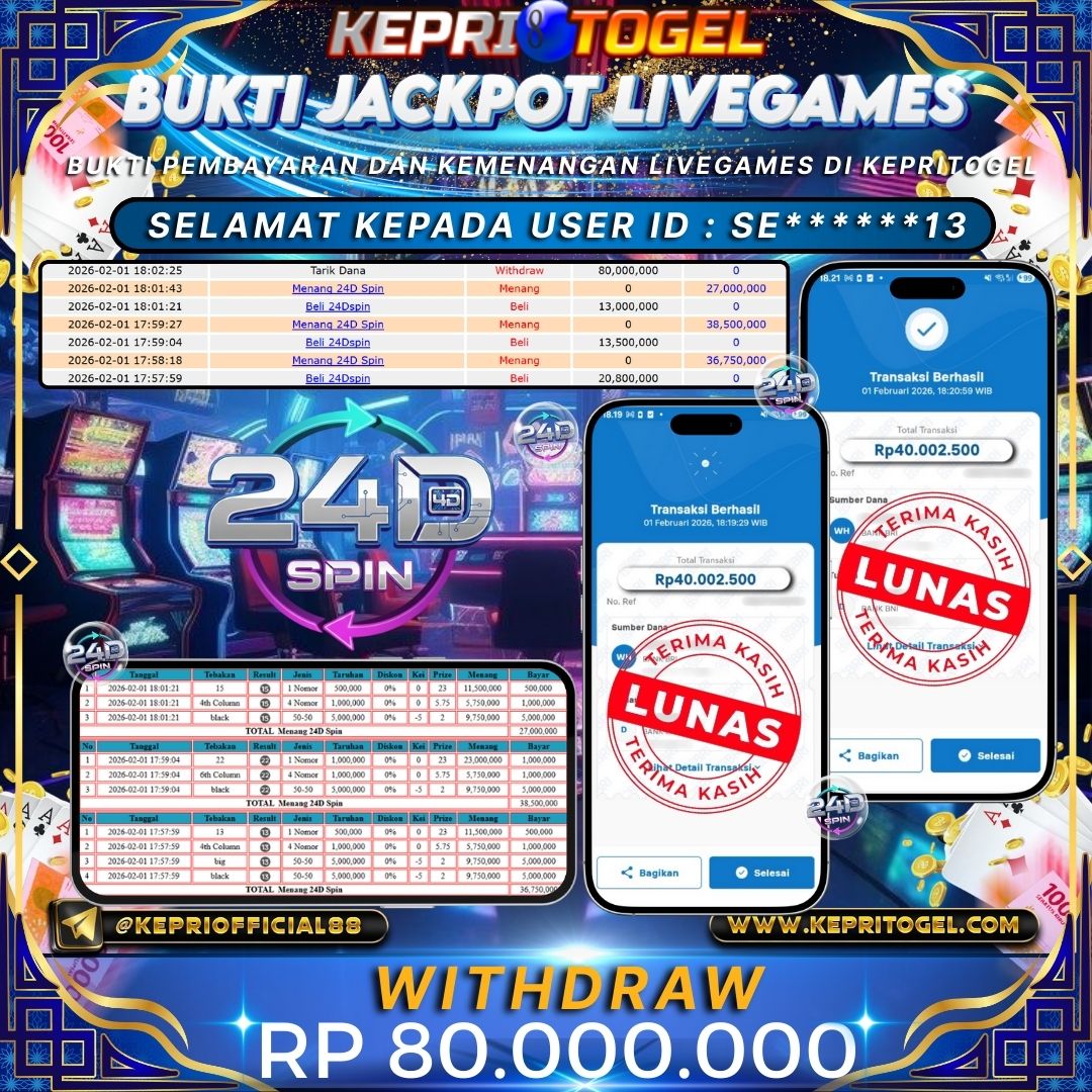 Kepritogel Jackpot Live Game 24D Spin Rp80,000,000