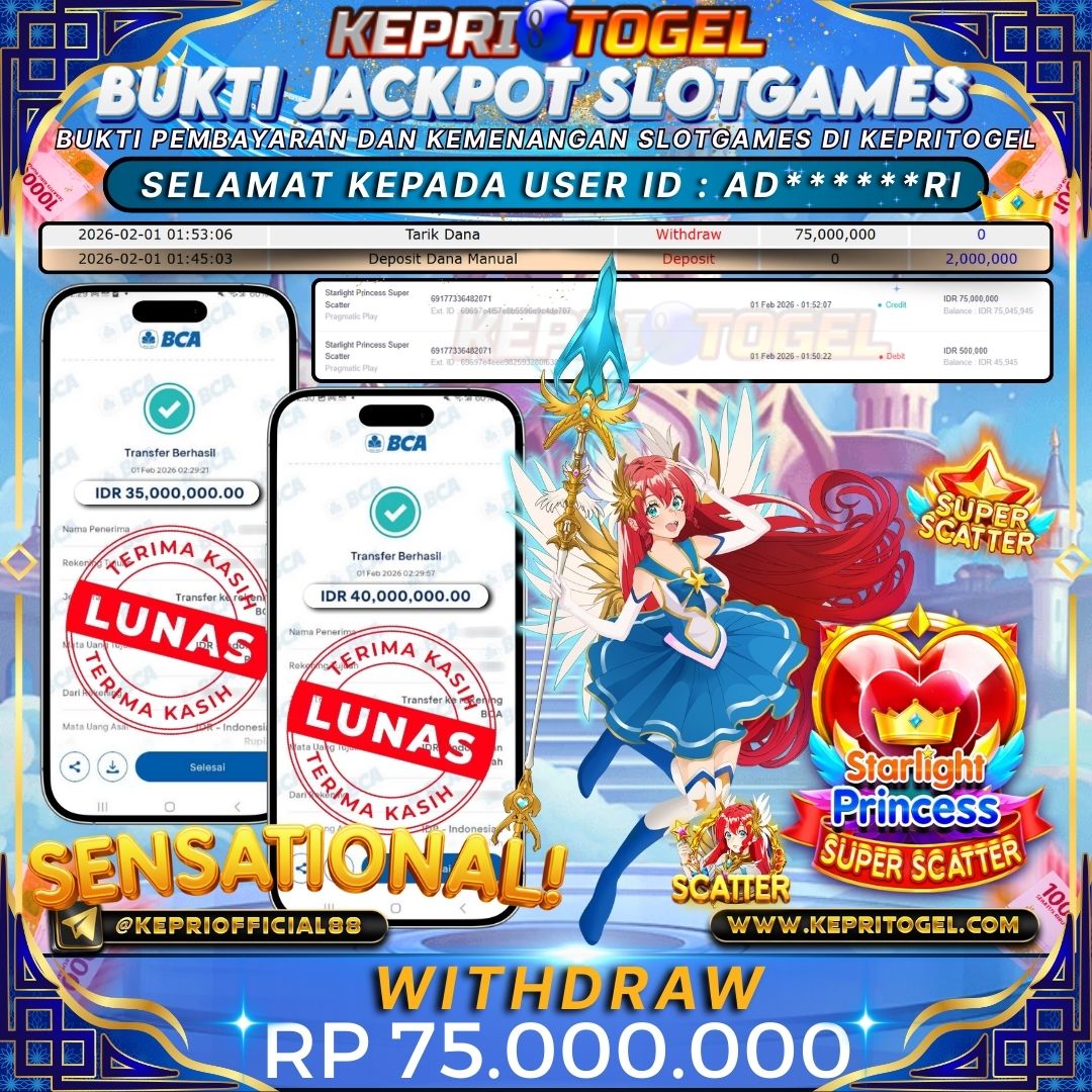 Kepritogel Jackpot Slot Starlight Princess Super Scatter Rp75,000,000
