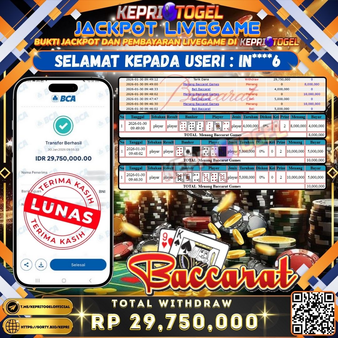 Kepritogel Jackpot Live Game Baccarat Rp29,750,000