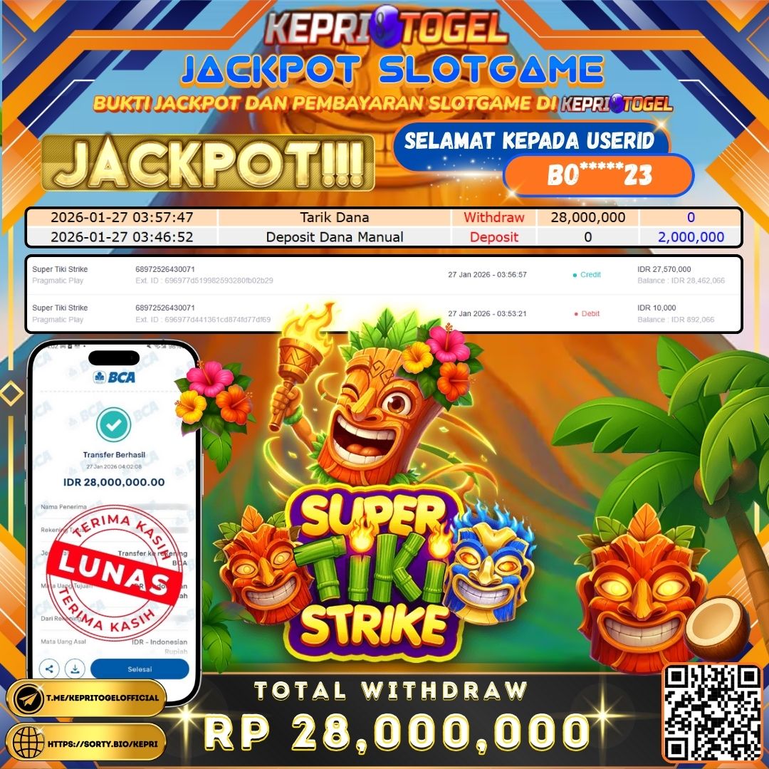 Kepritogel Jackpot Slot Super Tiki Strike Rp28,000,000