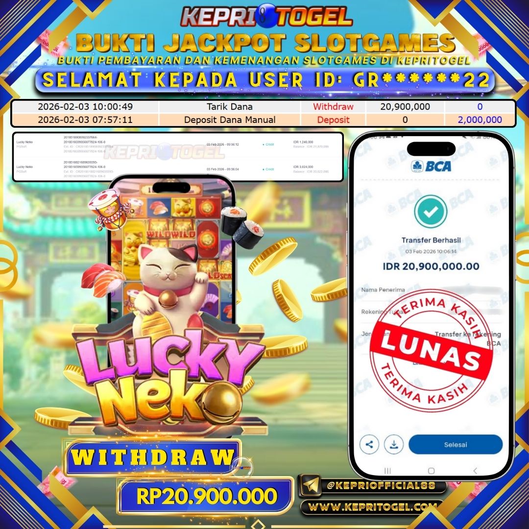 Kepritogel Jackpot Slot Lucky Neko Rp20,900,000