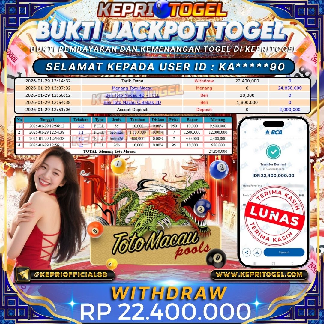 Kepritogel Jackpot Togel Toto Macao 4D Rp22,400,000