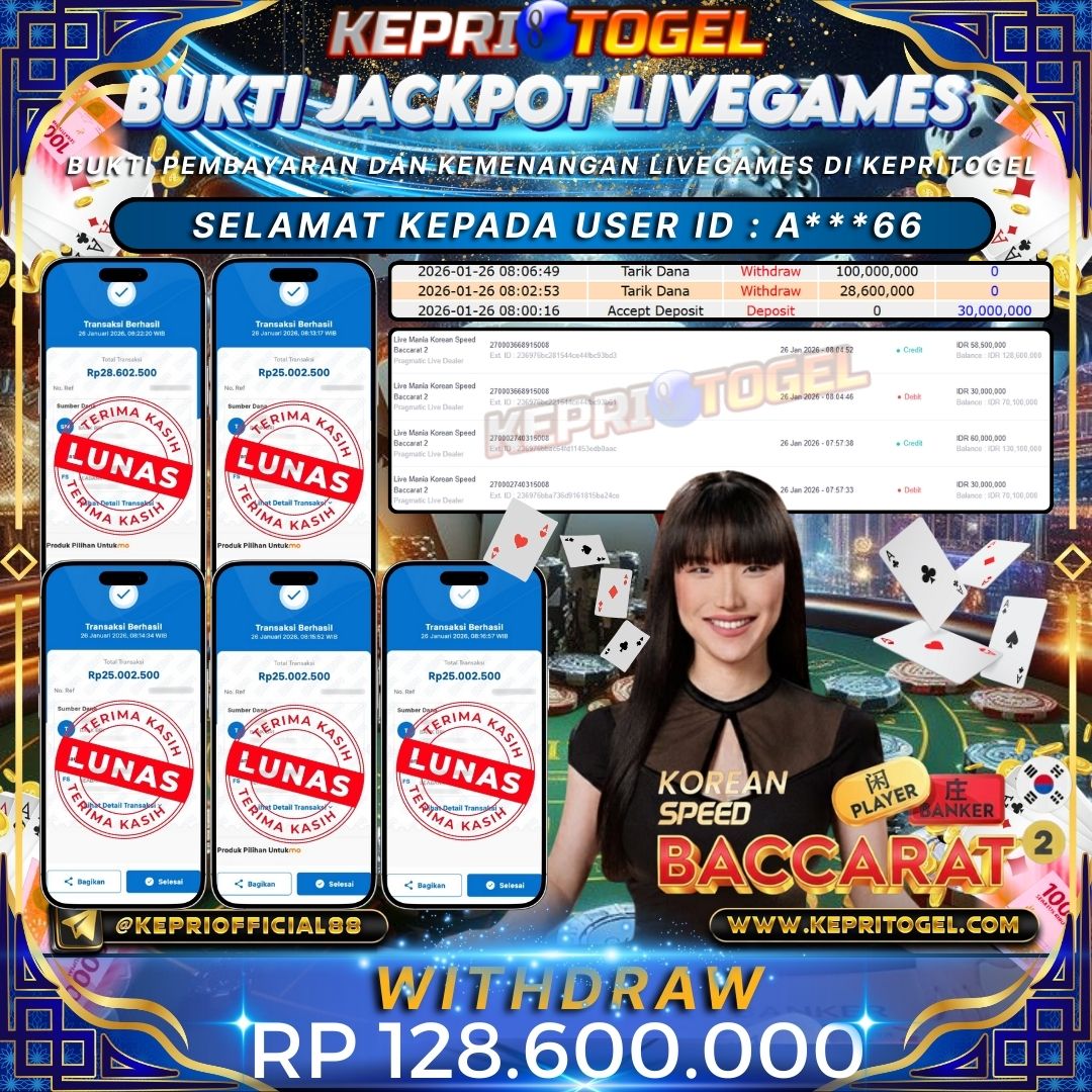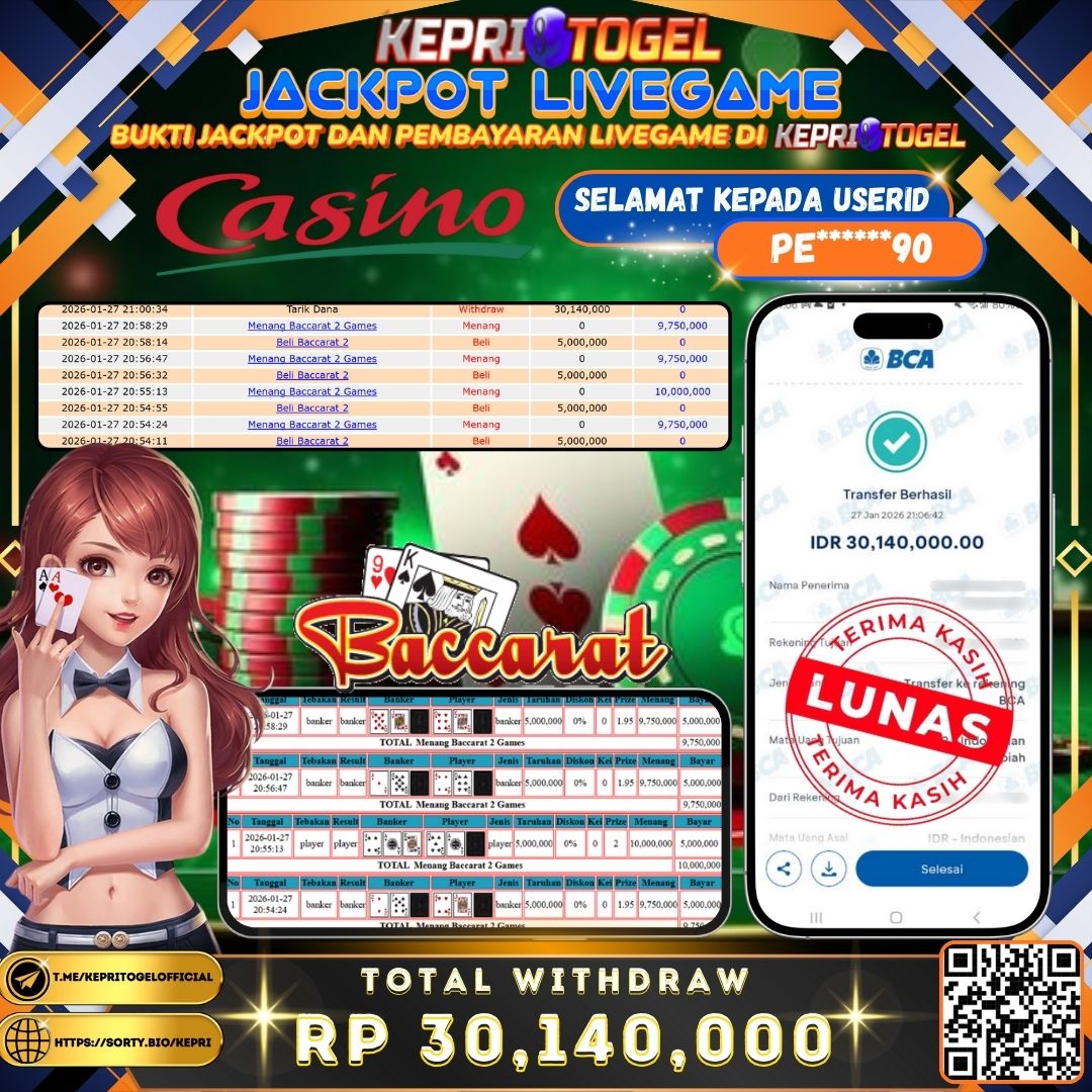 Kepritogel Jackpot Live Game Baccarat Rp30,650,000