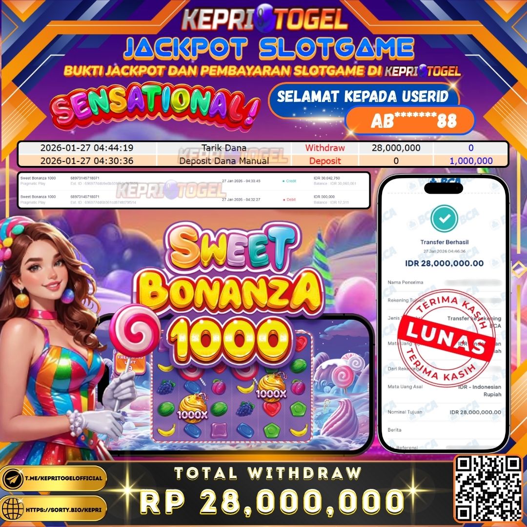 Kepritogel Jackpot Slot Sweet Bonanza 1000 Rp28,000,000