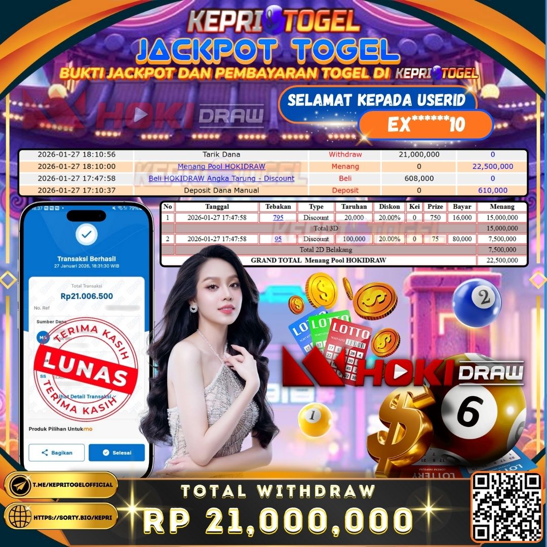 Kepritogel Jackpot Togel HOKIDRAW Rp21,000,000