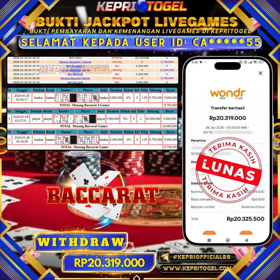 Kepritogel Jackpot Live Game Baccarat Rp20,319,000
