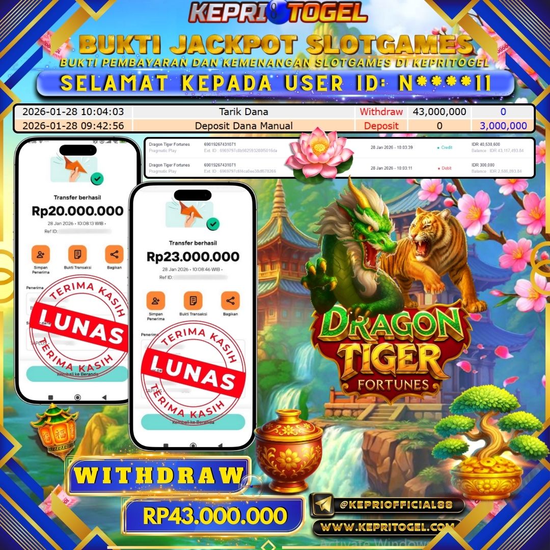 Kepritogel Jackpot Slot Dragon Tiger Fortunes Rp45,000,000