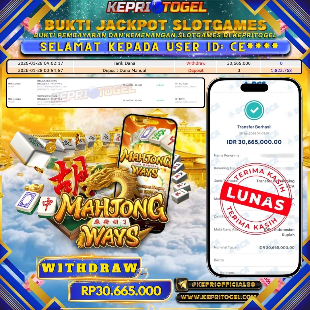 Kepritogel Jackpot Slot Mahjong Ways Rp30,665,000