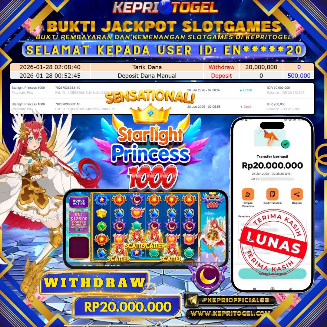 Kepritogel Jackpot Slot Starlight Princess 1000 Rp20,000,000