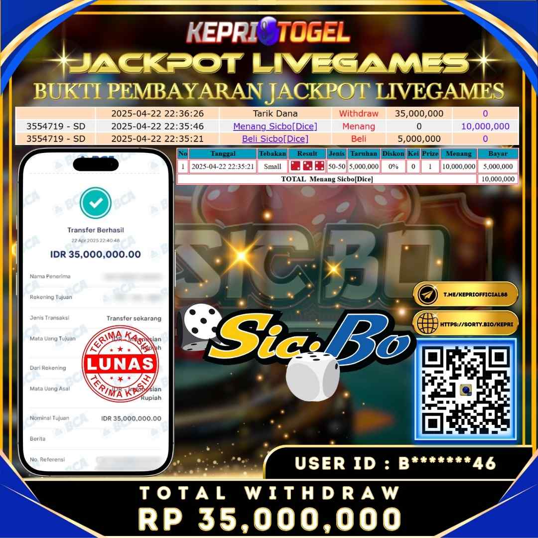 Kepritogel Jackpot Live Game MEGA SICBO Rp99,500,000