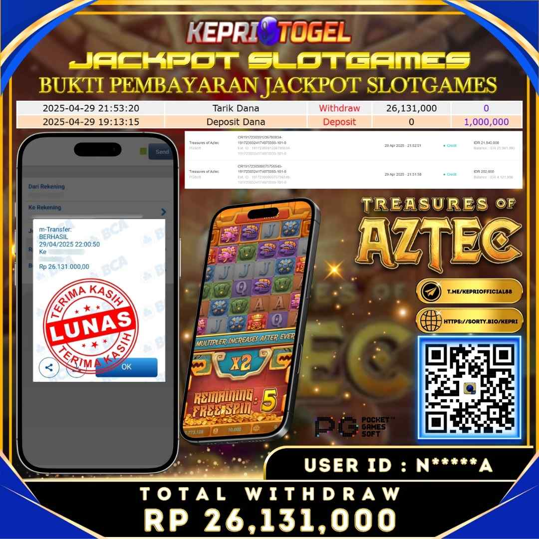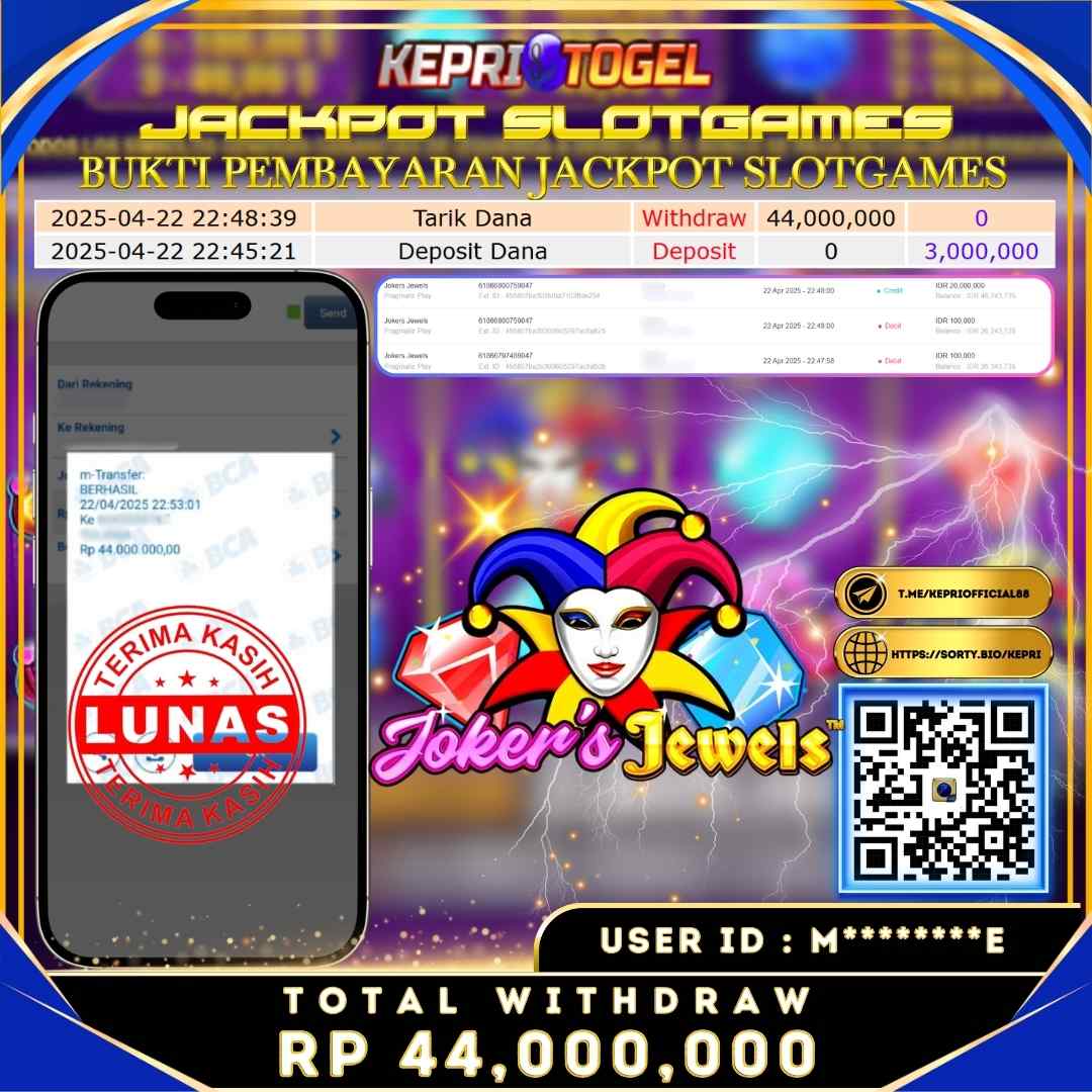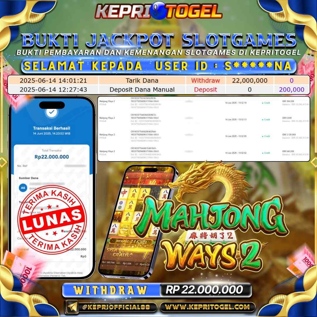 Selamat kepada UserId RE*****46 telah berhasil mendapatkan kemenangan jackpot pada permainan Slot Mahjong Ways Kepritogel sebesar Rp30,000,000,- . Kepritogel situs terpercaya sejak dulu hingga saat ini , Untuk kemenangan berapapun pasti akan kami bayarkan . Jangan ragu bermain di Kepri Togel . Kami pihak Kepritogel Menyampaikan terima kasih kepada seluruh member Kepri Togel yang telah Percaya dan setia Bersama kami bermain di Kepritogel hingga saat ini.