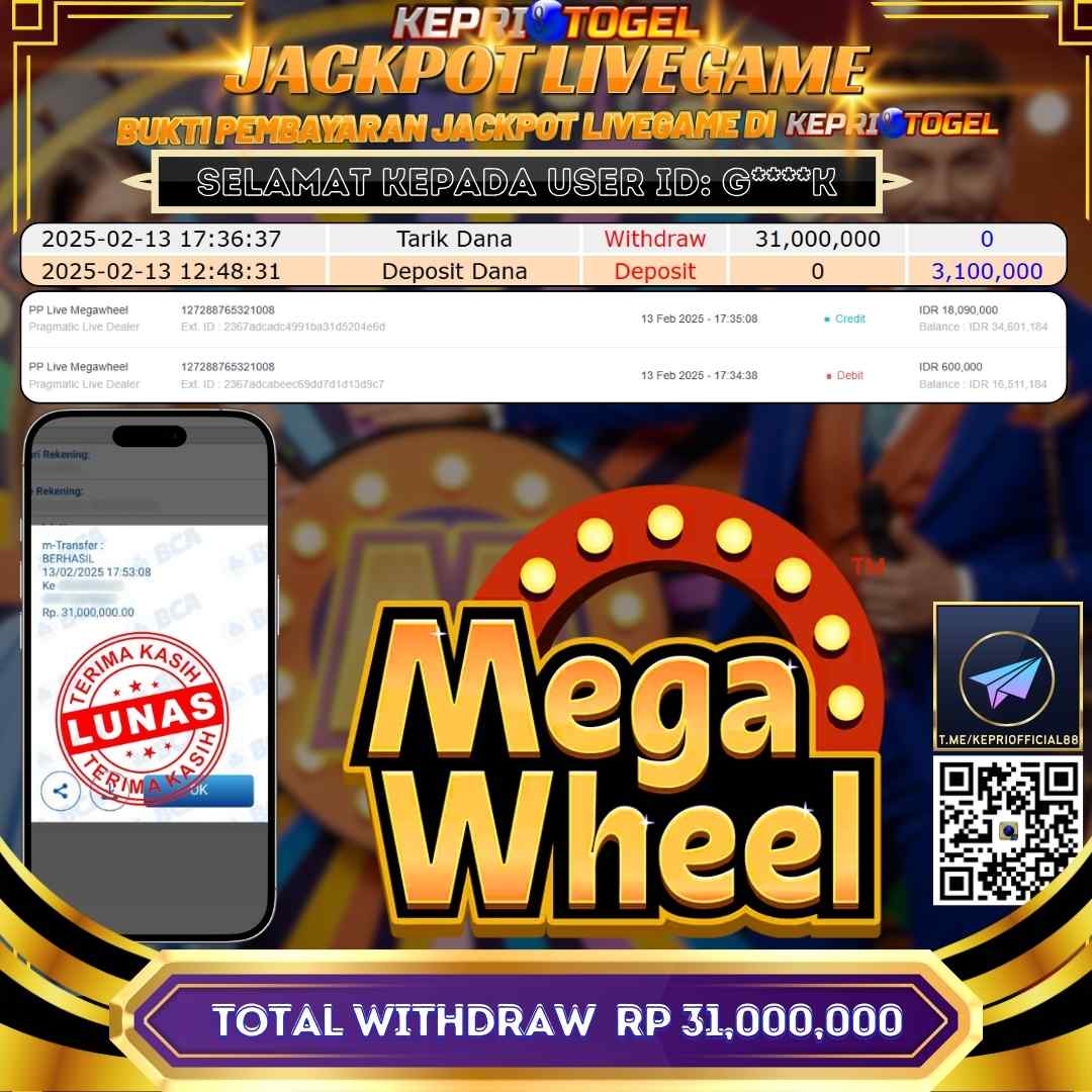 Kepritogel Jackpot Live Game MEGA WHEEL Rp31,000,000