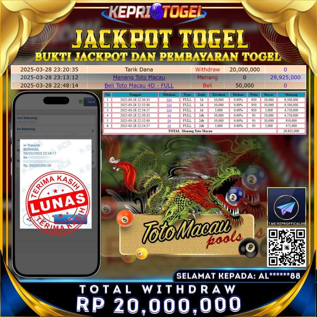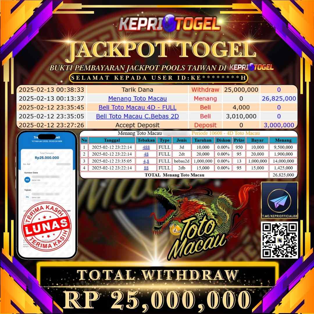 Kepritogel Jackpot Togel TOTO MACAU 4D Rp25,000,000