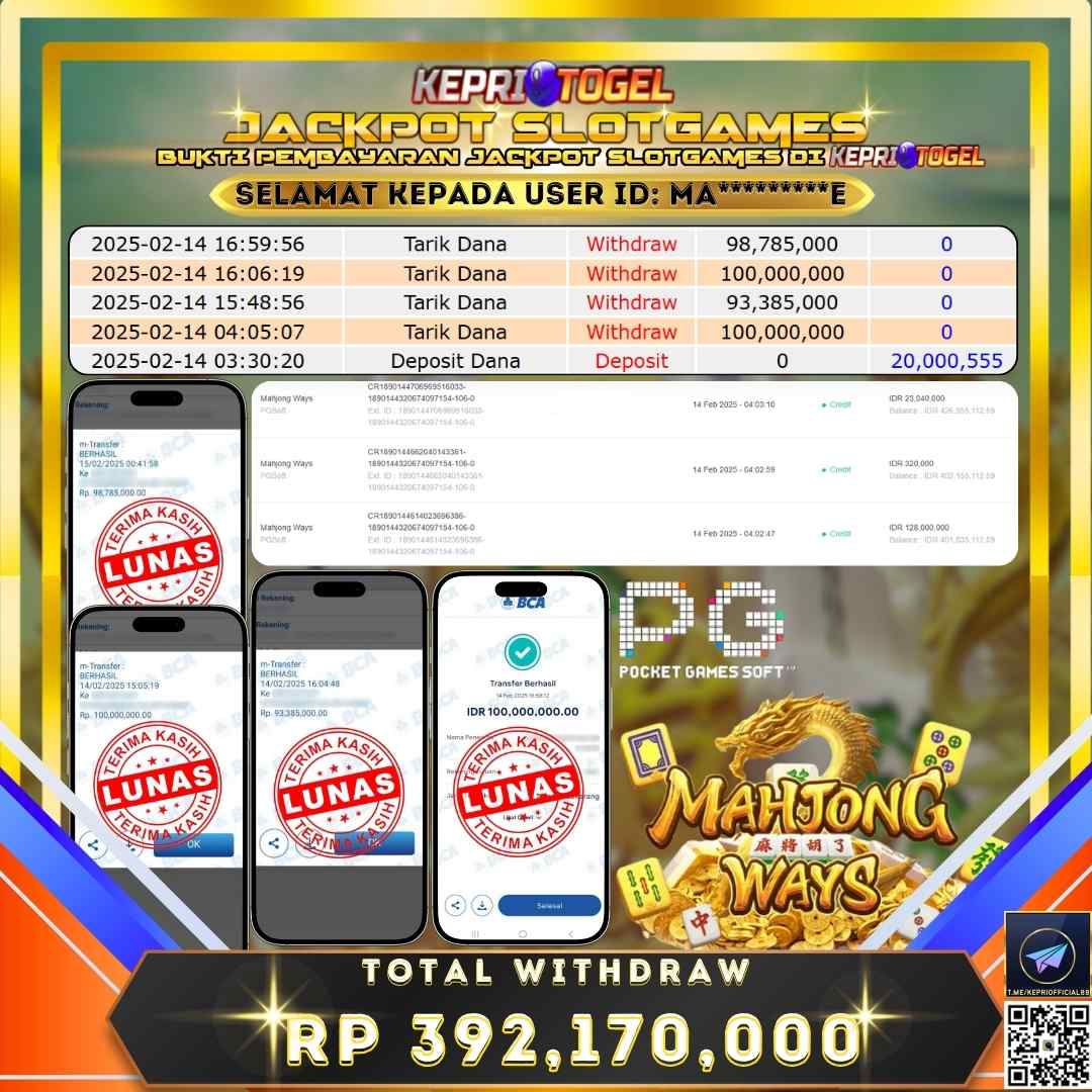 Kepritogel Jackpot Slot Mahjong Ways Rp392,170,000