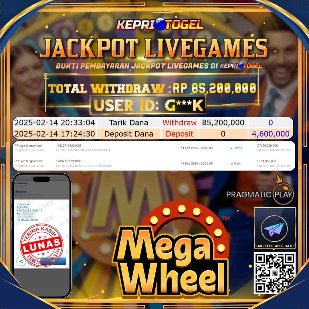 Kepritogel Jackpot Live Game MEGA WHEEL Rp85,200,000