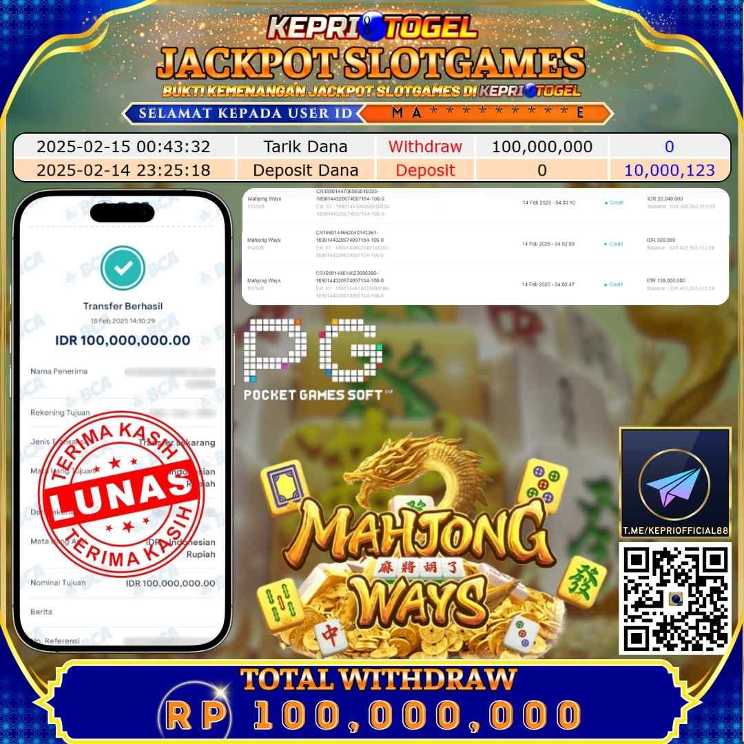 Kepritogel Jackpot Slot Mahjong Ways Rp100,000,000