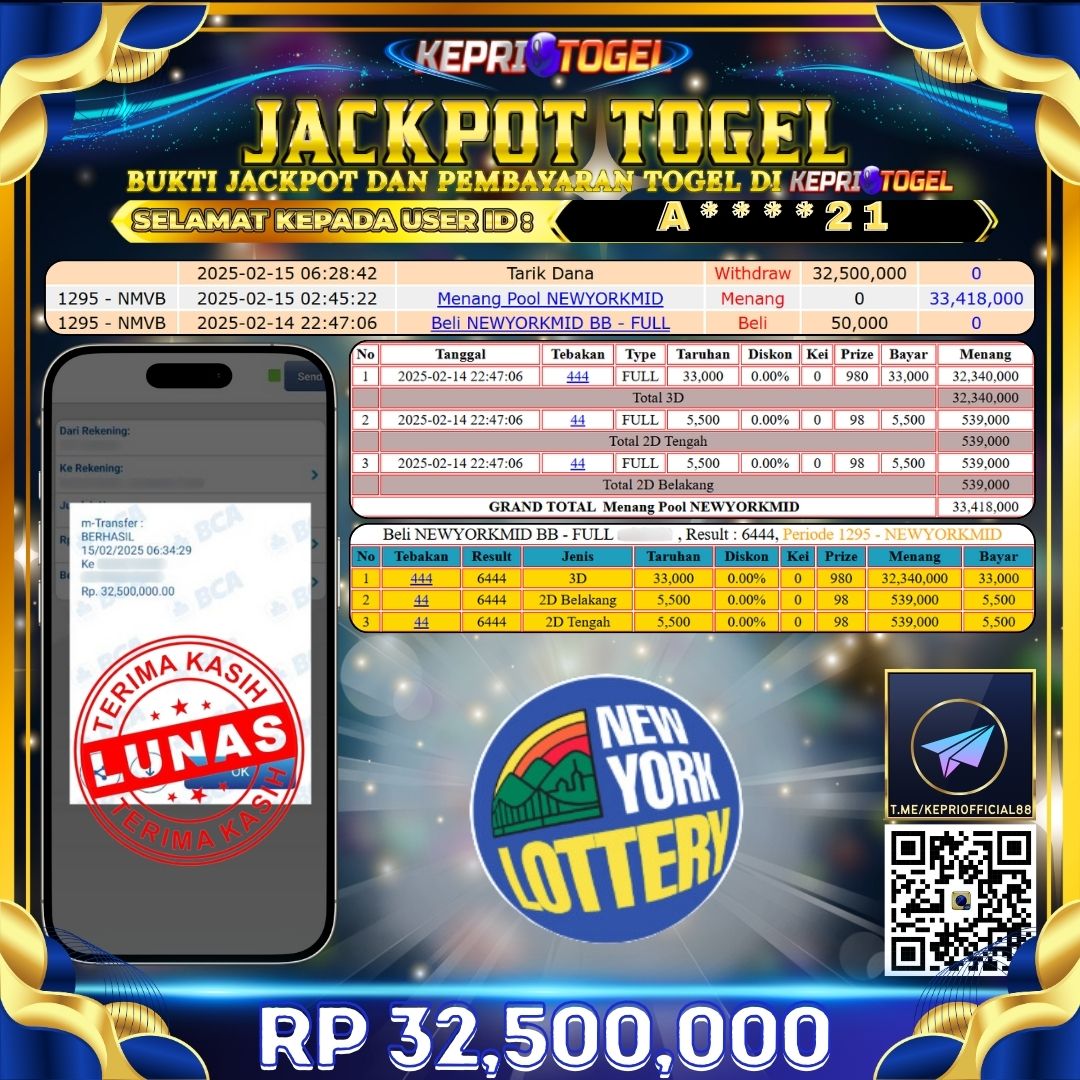 Kepritogel Jackpot Togel NEWYORKMID Rp32,500,000
