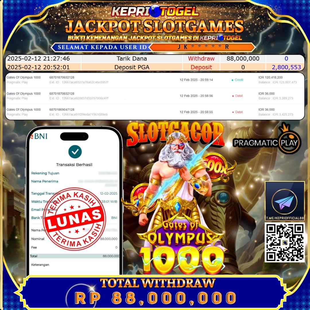 Kepritogel Jackpot Slot Gates Of Olympus 1000 Rp88,000,000