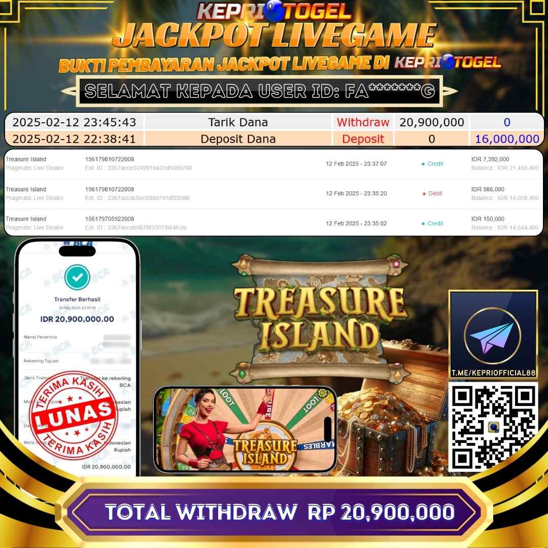Kepritogel Jackpot Live Game TREASURE ISLAND Rp20,900,000