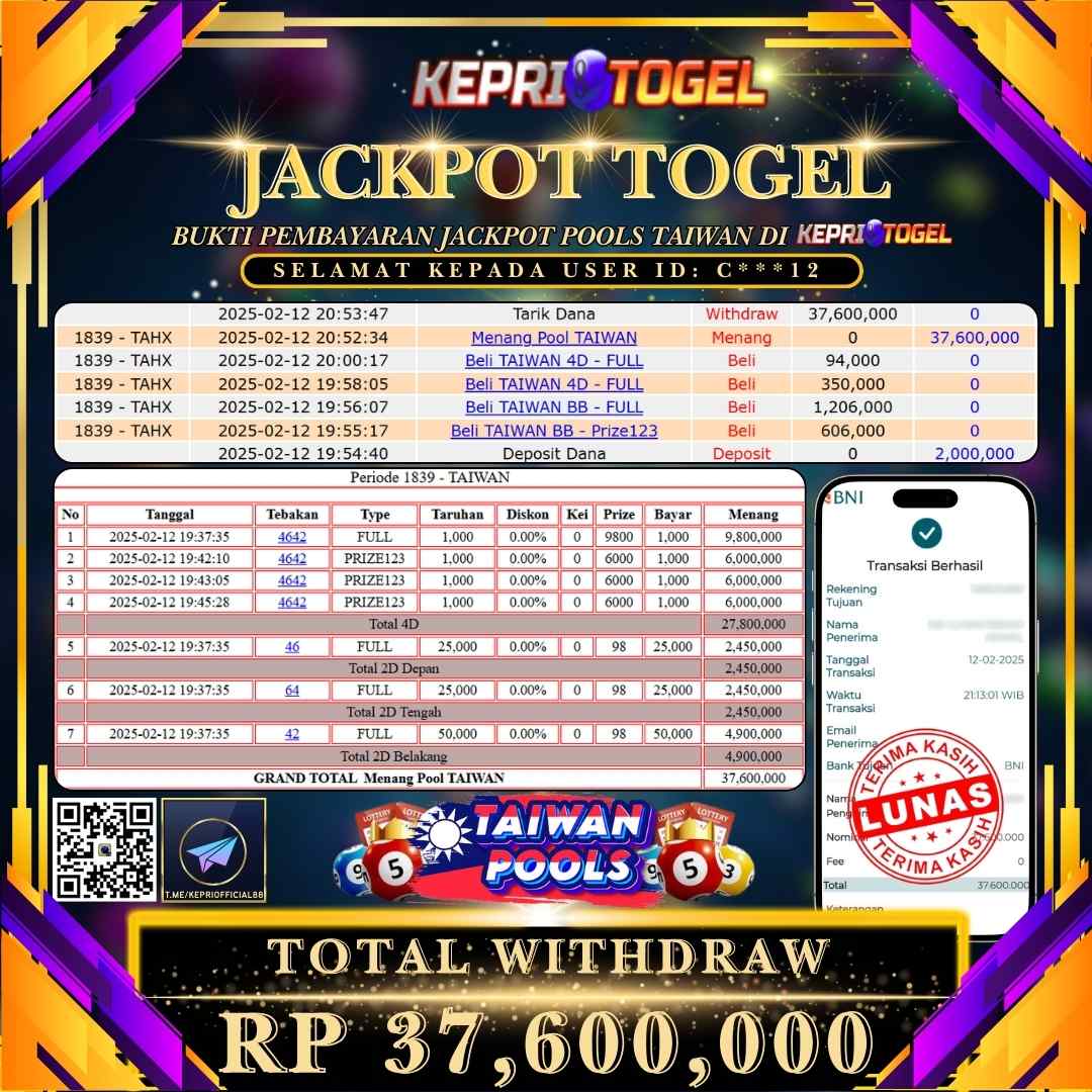 Kepritogel Jackpot Togel TAIWAN POOL Rp37,600,000