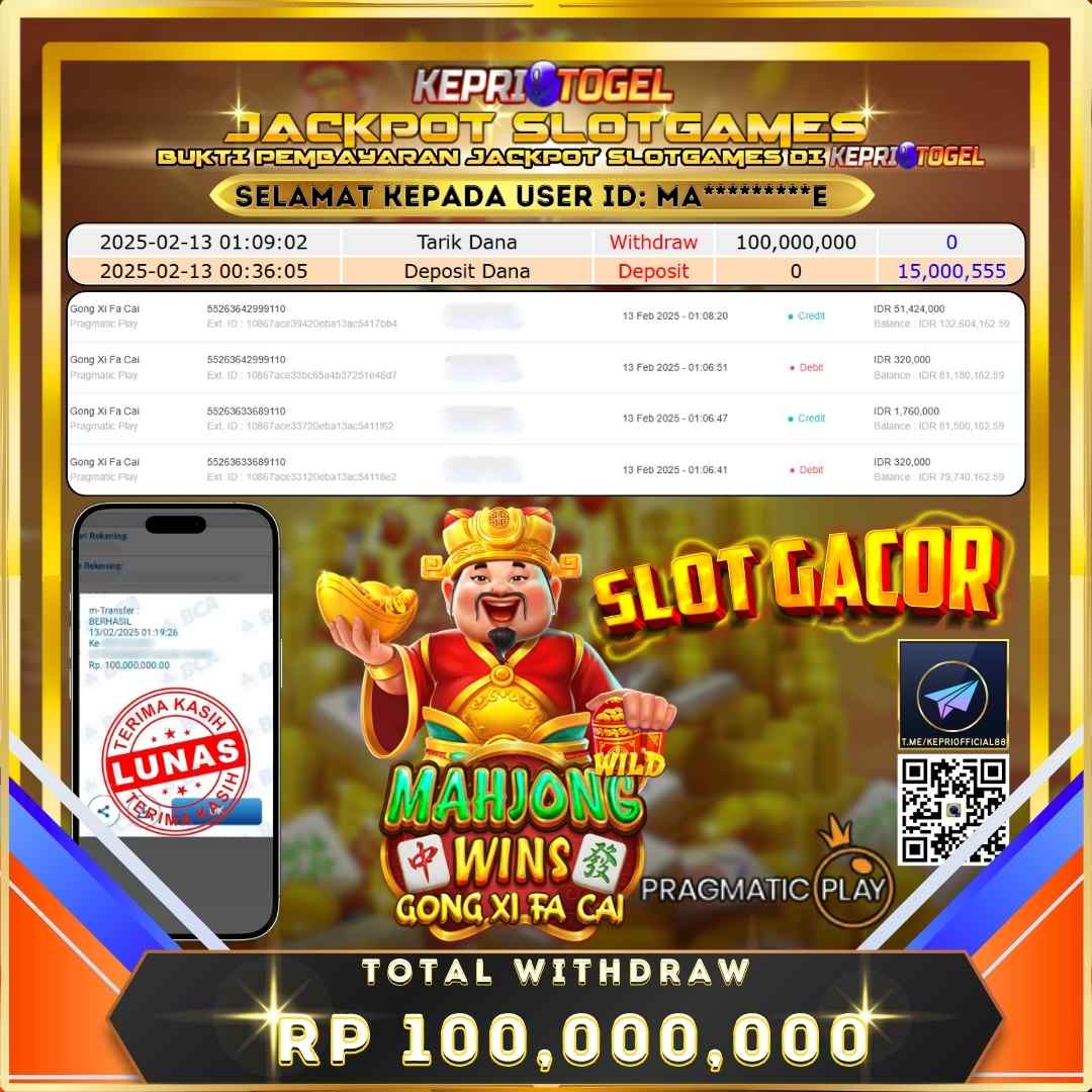 Kepritogel Jackpot Slot Mahjong Wins - Gong Xi Fa Cai Rp100,000,000