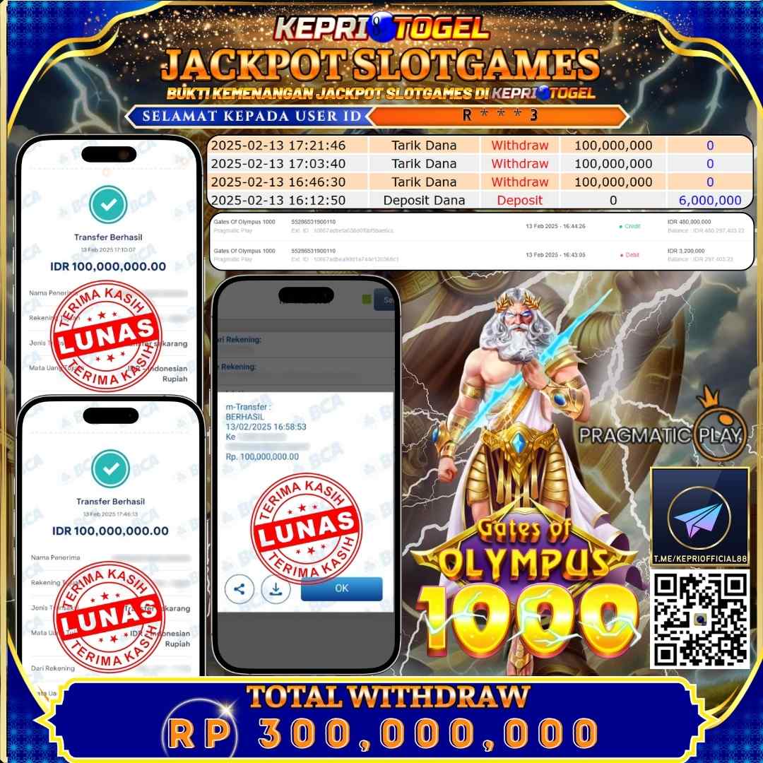 Kepritogel Jackpot Slot Gates Of Olympus 1000 Rp300,000,000