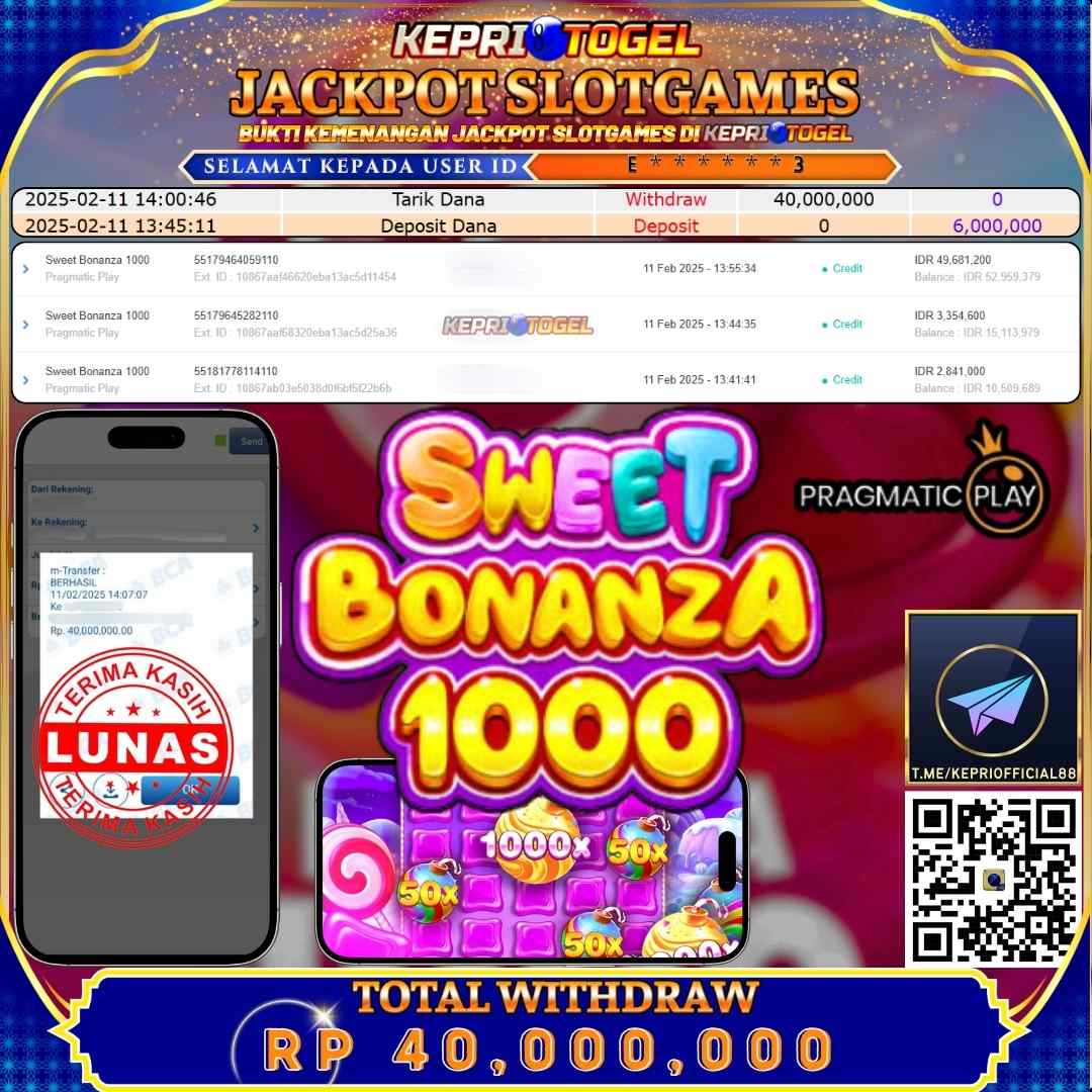 Kepritogel Jackpot Slot Sweet Bonanza 1000 Rp40,000,000