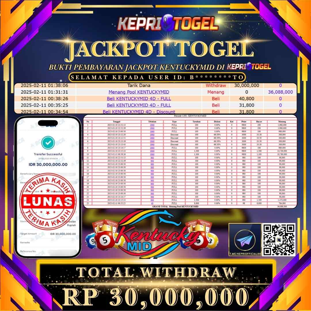 Kepritogel Jackpot Togel KENTUCKY MID POOL Rp30,000,000