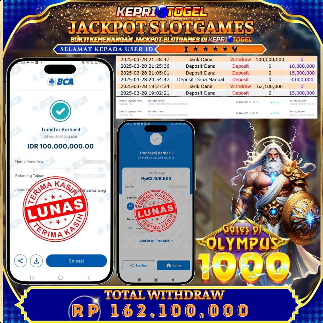 Selamat kepada UserId k*****u telah berhasil mendapatkan kemenangan jackpot pada permainan Gates Of Olympus Kepritogel sebesar Rp70,162,000,- . Kepritogel situs terpercaya sejak dulu hingga saat ini , Untuk kemenangan berapapun pasti akan kami bayarkan . Jangan ragu bermain di Kepri Togel . Kami pihak Kepritogel Menyampaikan terima kasih kepada seluruh member Kepri Togel yang telah Percaya dan setia Bersama kami bermain di Kepritogel hingga saat ini.