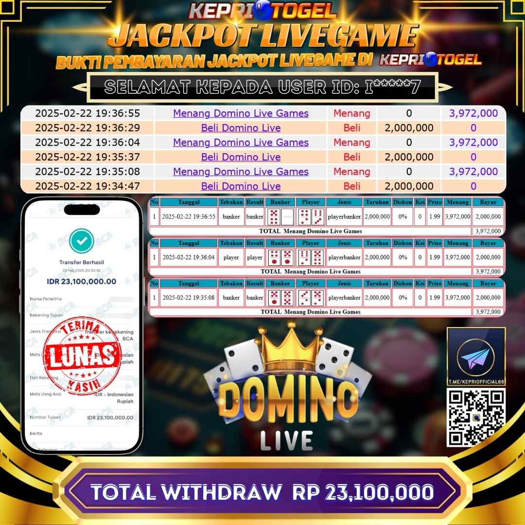 Kepritogel Jackpot Live Domino Live Games Rp23,100,000