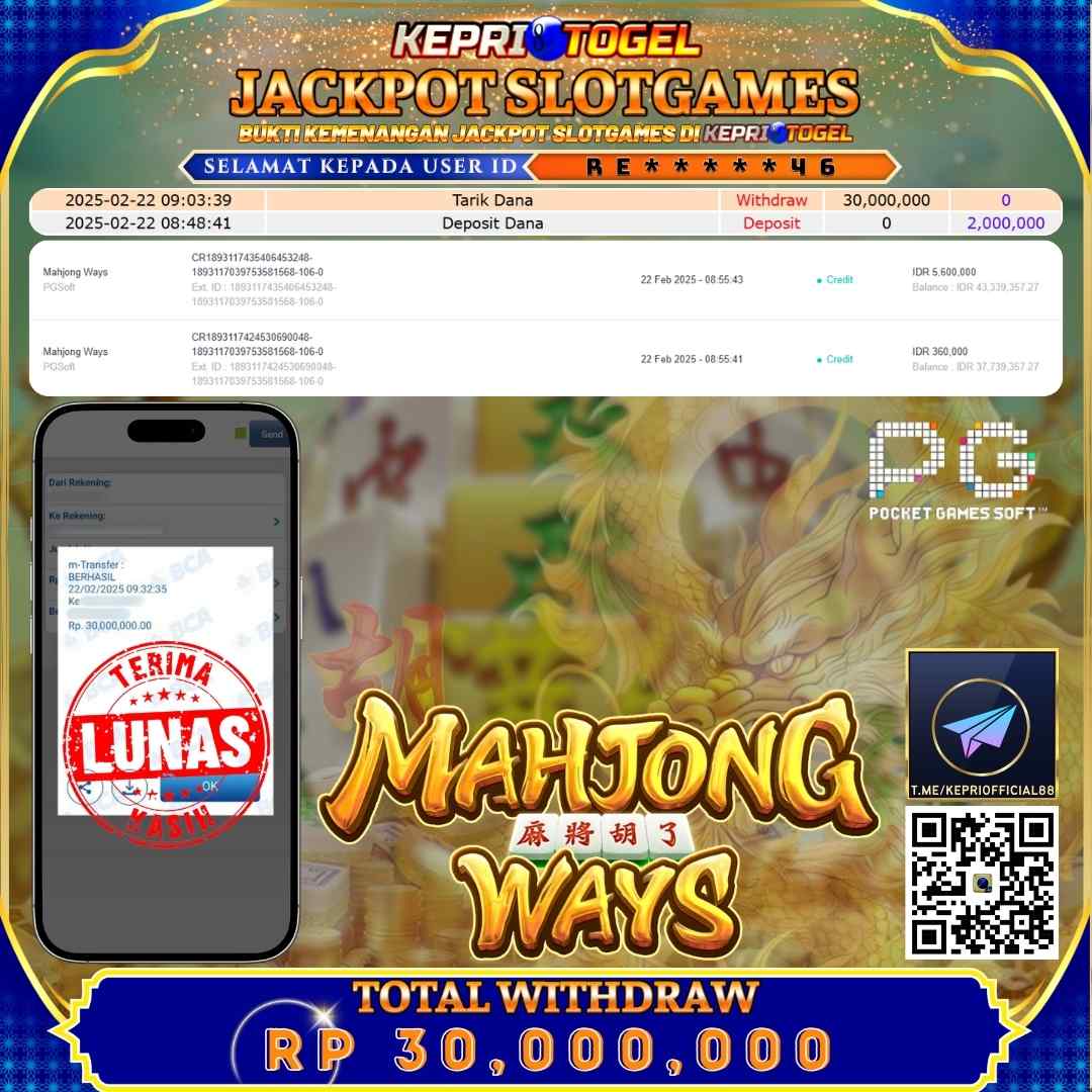 Kepritogel Jackpot Slot Mahjong Ways Rp30,000,000