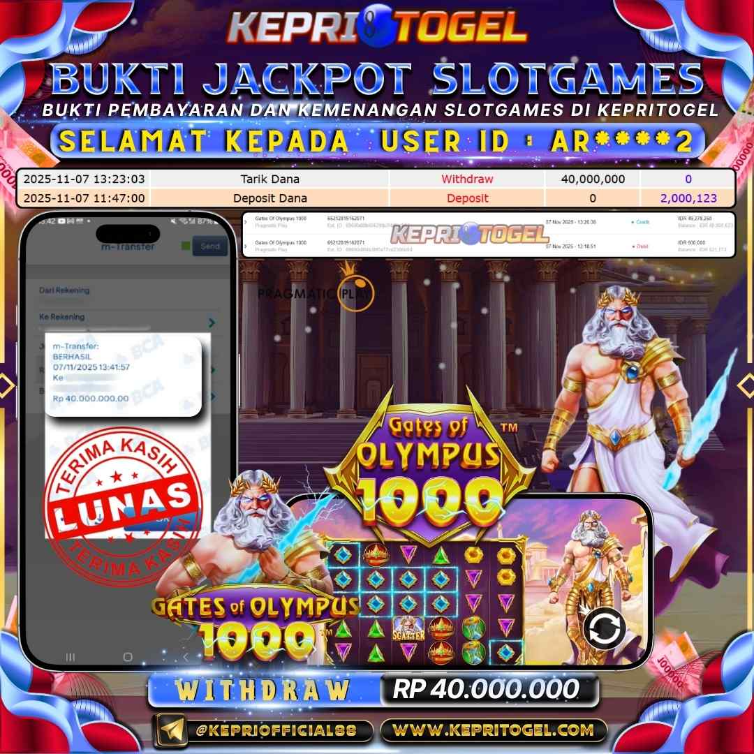 Selamat kepada UserId T****A telah berhasil mendapatkan kemenangan jackpot pada permainan Gates Of Olympus 1000 Kepritogel sebesar Rp45,000,000,- . Kepritogel situs terpercaya sejak dulu hingga saat ini , Untuk kemenangan berapapun pasti akan kami bayarkan . Jangan ragu bermain di Kepri Togel . Kami pihak Kepritogel Menyampaikan terima kasih kepada seluruh member Kepri Togel yang telah Percaya dan setia Bersama kami bermain di Kepritogel hingga saat ini.