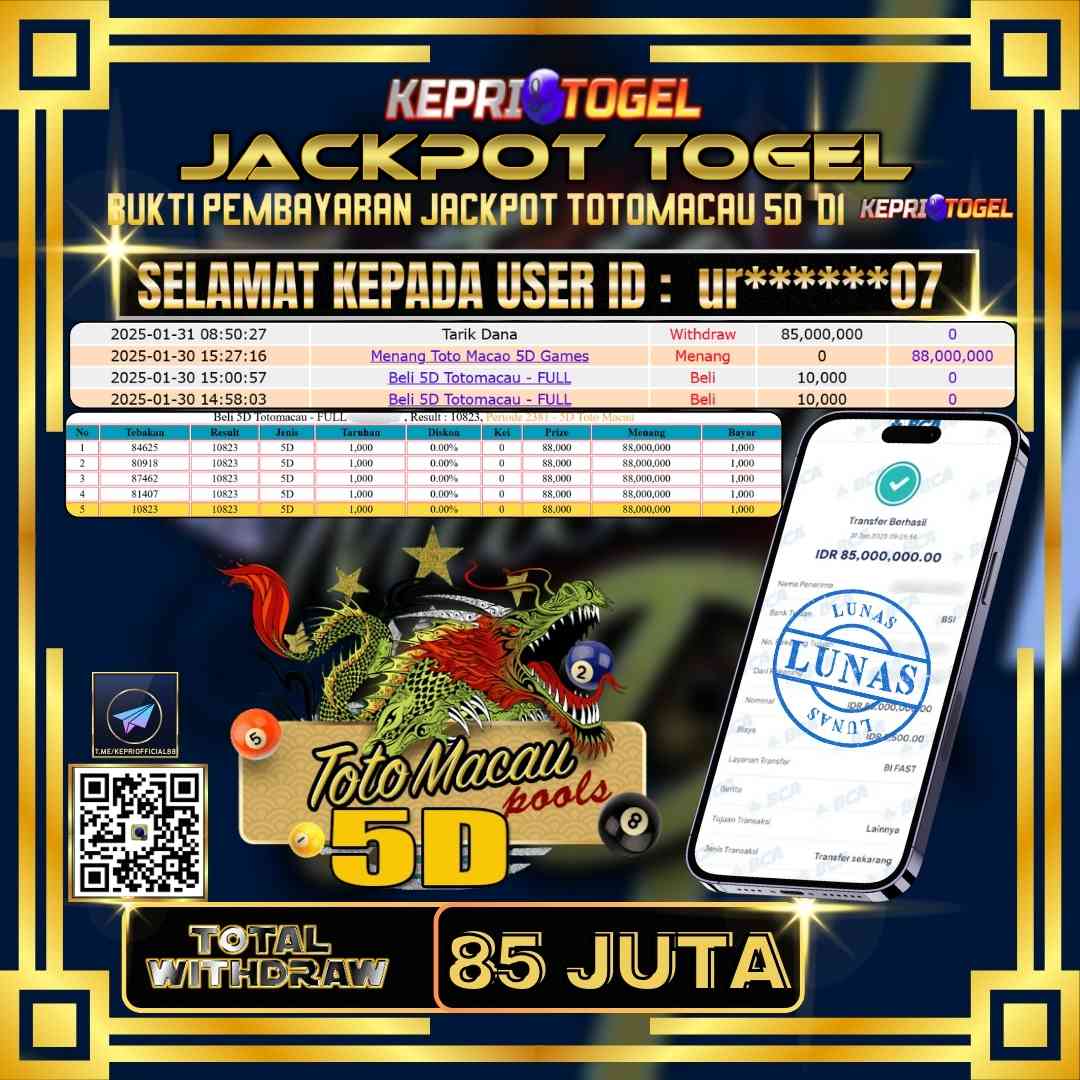 Kepritogel Jackpot Togel Toto Macao 5D Rp85,000,000