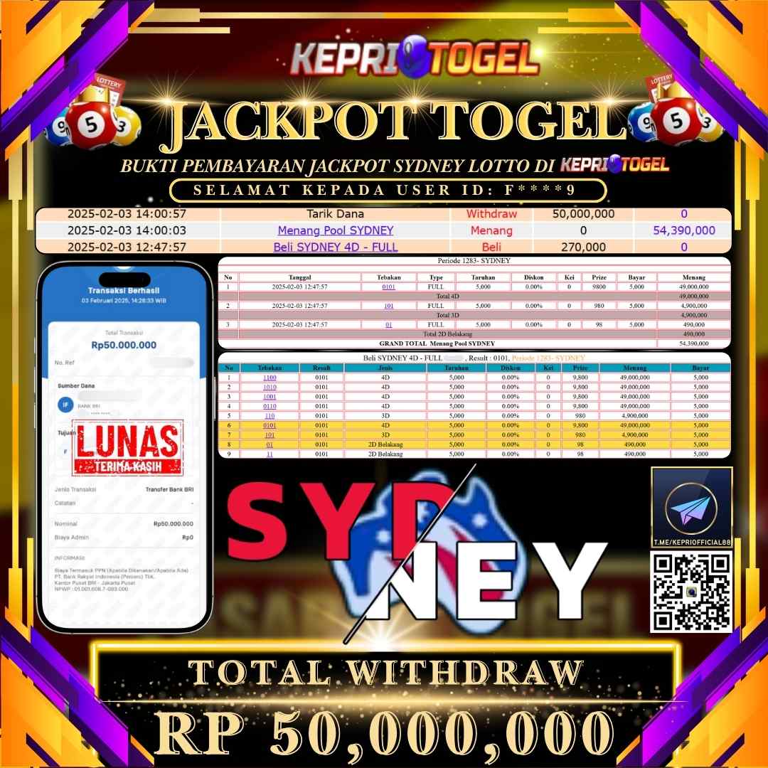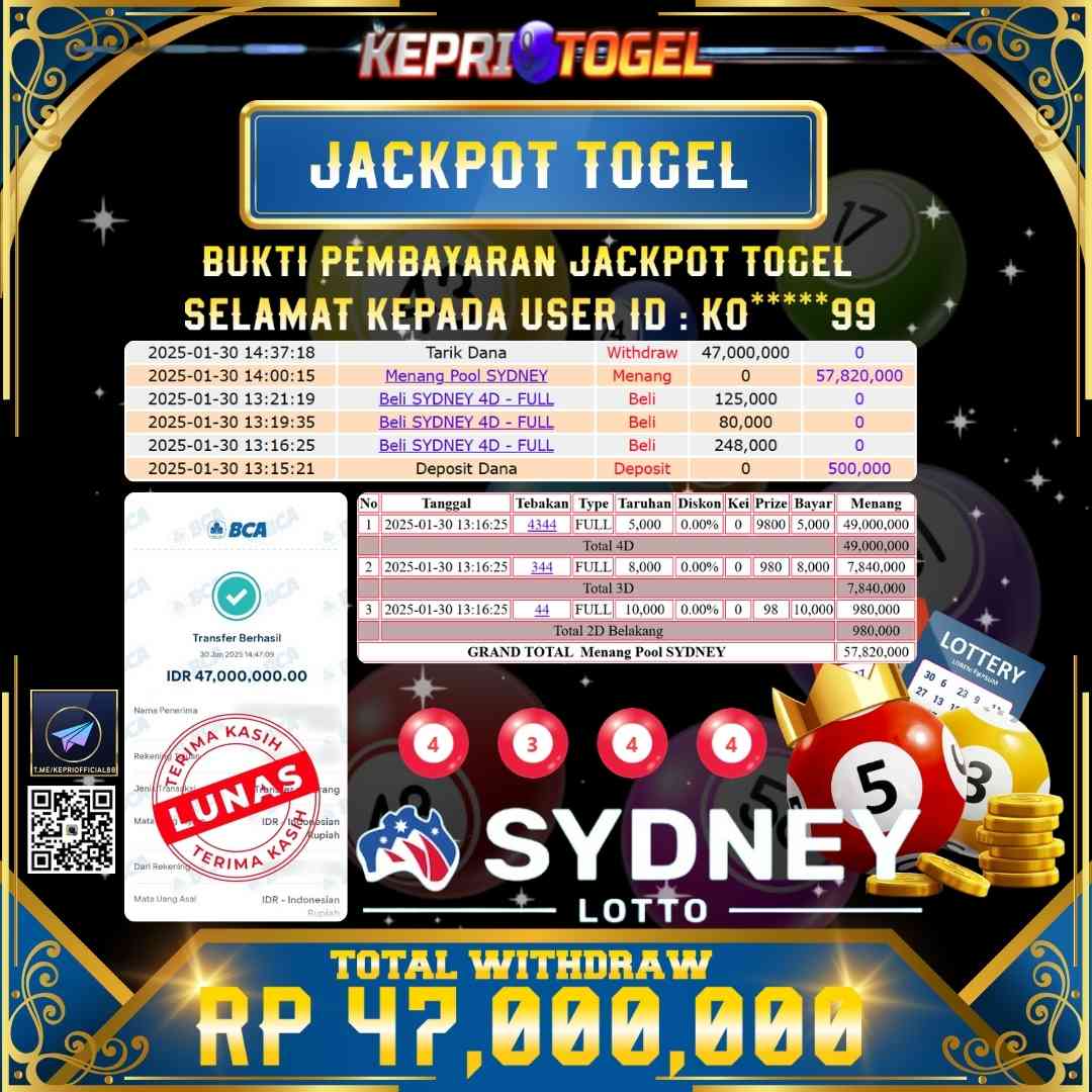 Kepritogel Jackpot Togel SYDNEY LOTTO Rp47,000,000