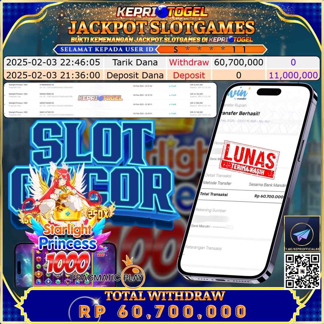 Selamat kepada UserId S****11 telah berhasil mendapatkan kemenangan jackpot pada permainan Slot Starlight Princess 1000 Kepritogel sebesar Rp60,700,000,- . Kepritogel situs terpercaya sejak dulu hingga saat ini , Untuk kemenangan berapapun pasti akan kami bayarkan . Jangan ragu bermain di Kepri Togel . Kami pihak Kepritogel Menyampaikan terima kasih kepada seluruh member Kepri Togel yang telah Percaya dan setia Bersama kami bermain di Kepritogel hingga saat ini.
