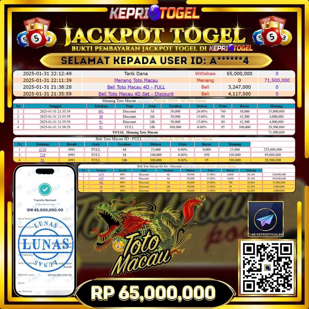 Kepritogel Jackpot Togel Toto Macau Rp65,000,000