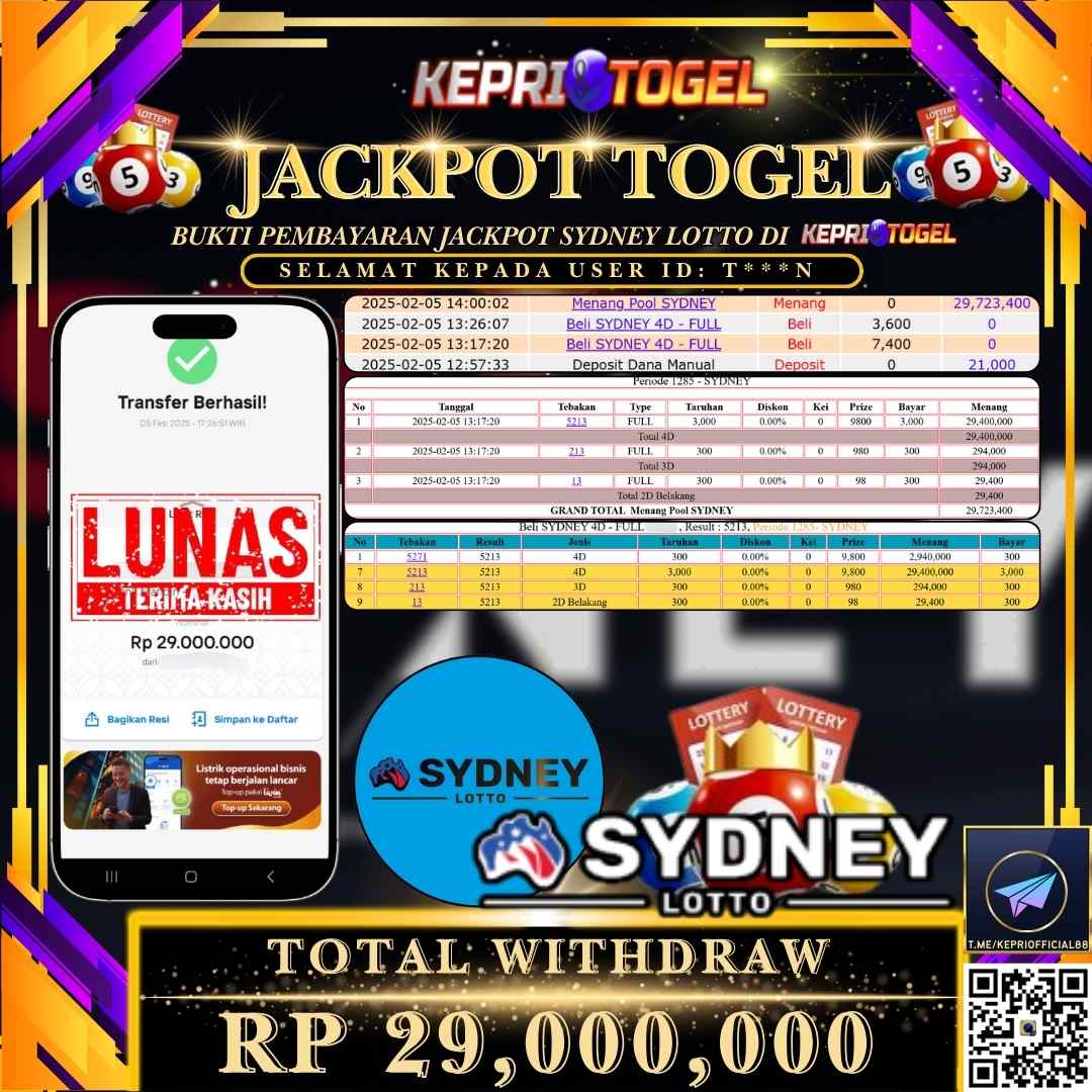 Kepritogel Jackpot Togel SYDNEY LOTTO Rp29,000,000