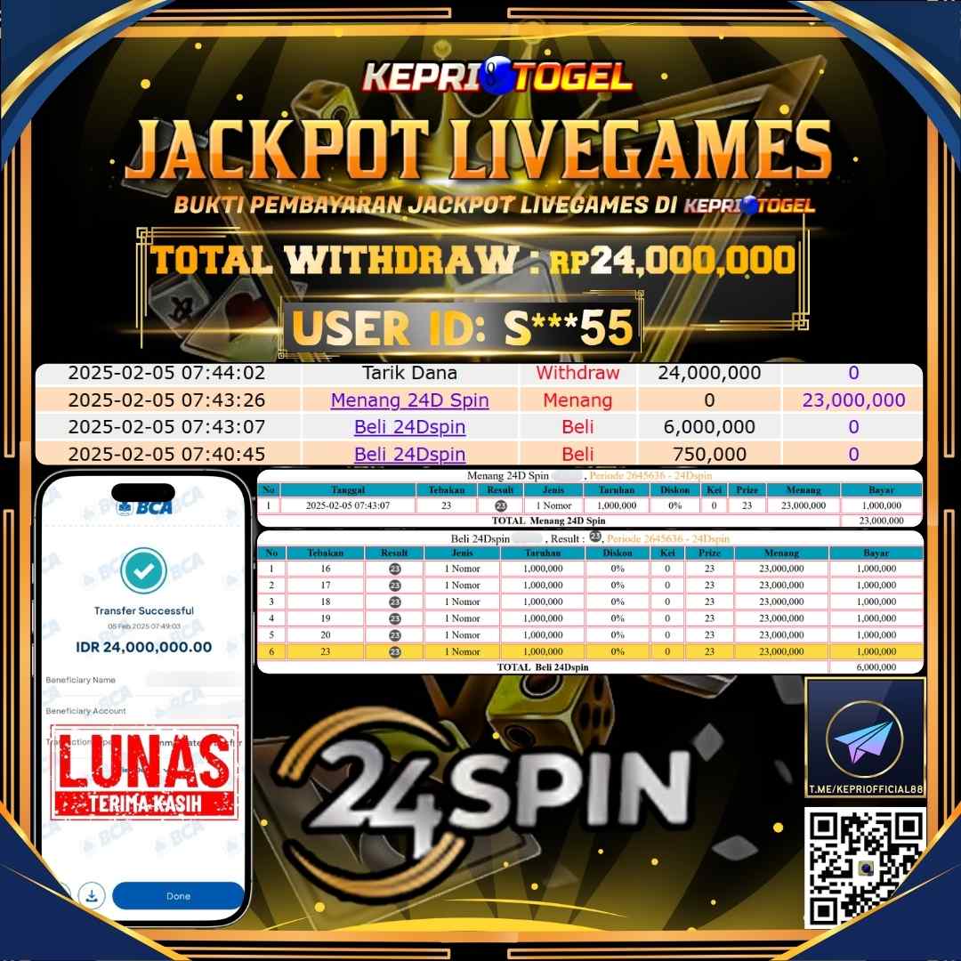 Kepritogel Jackpot Live Game 24D Spin Rp24,000,000