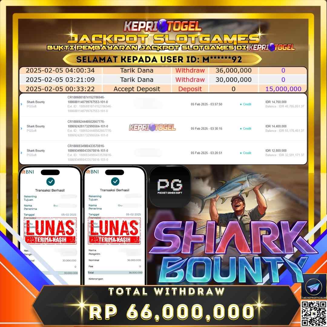 Kepritogel Jackpot Slot Shark Bounty Rp66,000,000