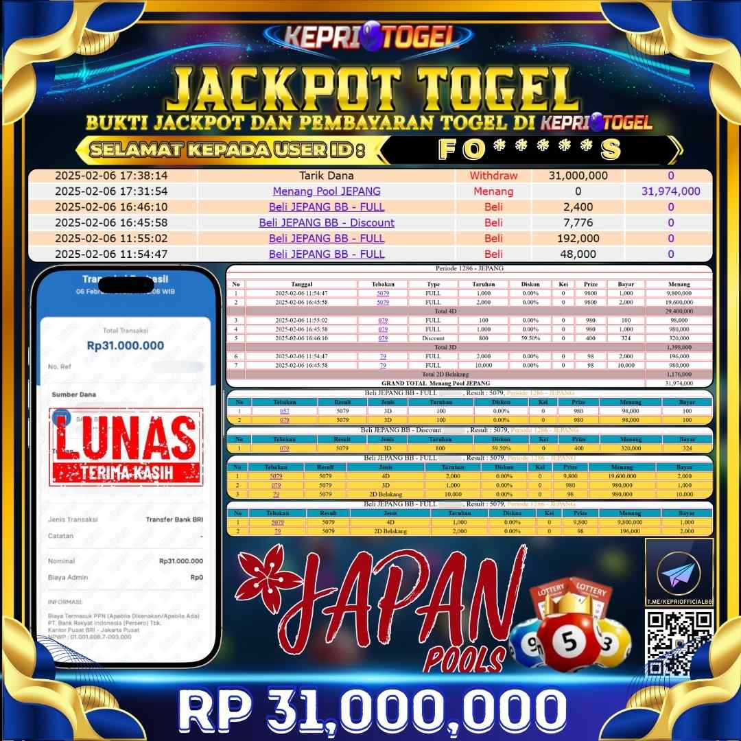 Kepritogel Jackpot Togel JEPANG POOLS Rp31,000,000