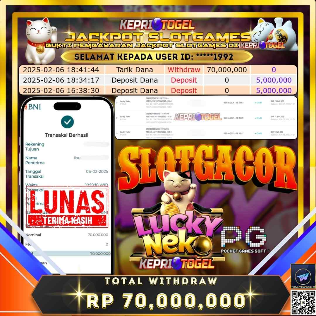 Kepritogel Jackpot Lucky Neko Rp70,000,000
