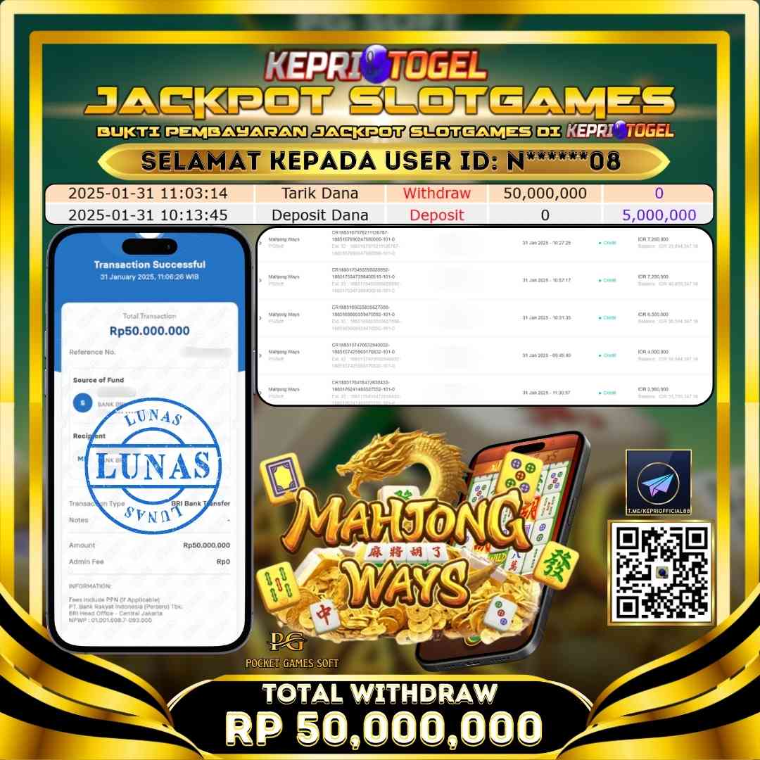 Kepritogel Jackpot Slot Mahjong Ways Rp50,000,000