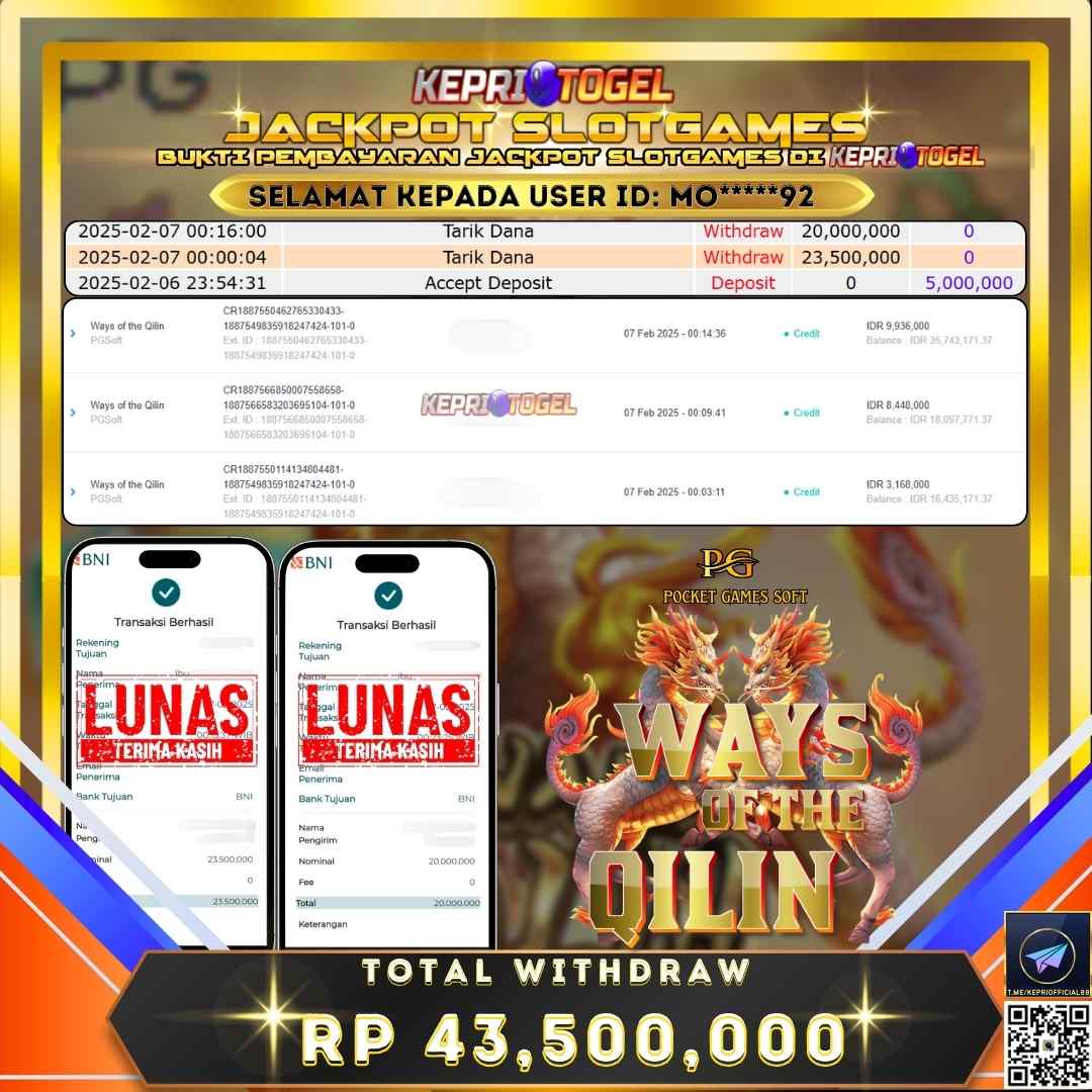 Kepritogel Jackpot Slot Ways of the Qilin Rp43,500,000