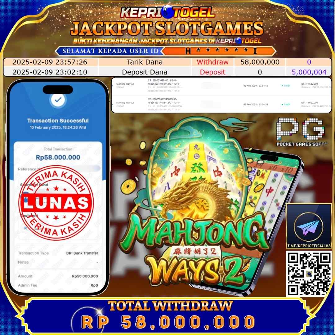 Kepritogel Jackpot Slot Mahjong Ways 2 Rp58,000,000