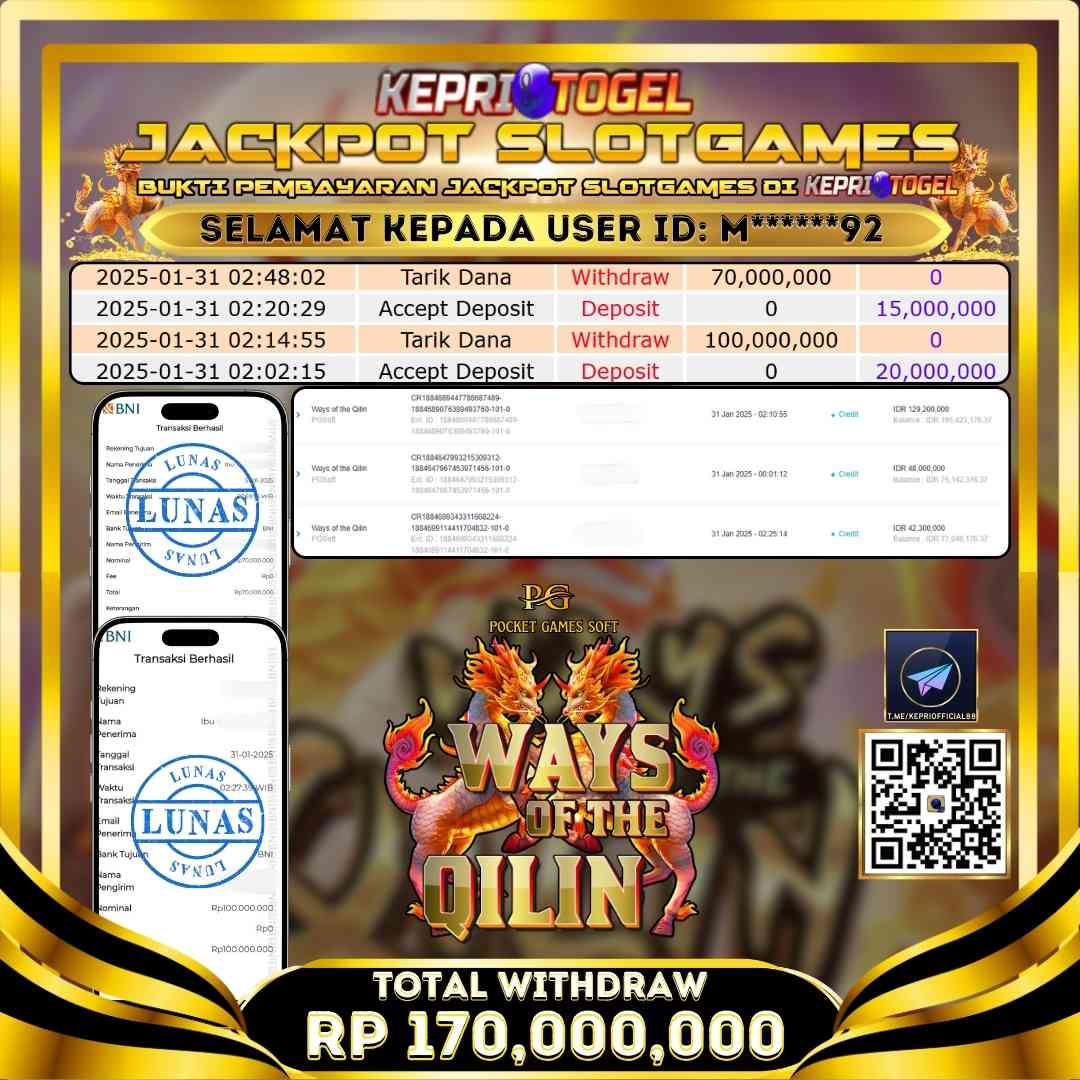 Kepritogel Jackpot Slot Ways of the Qilin Rp170,000,000