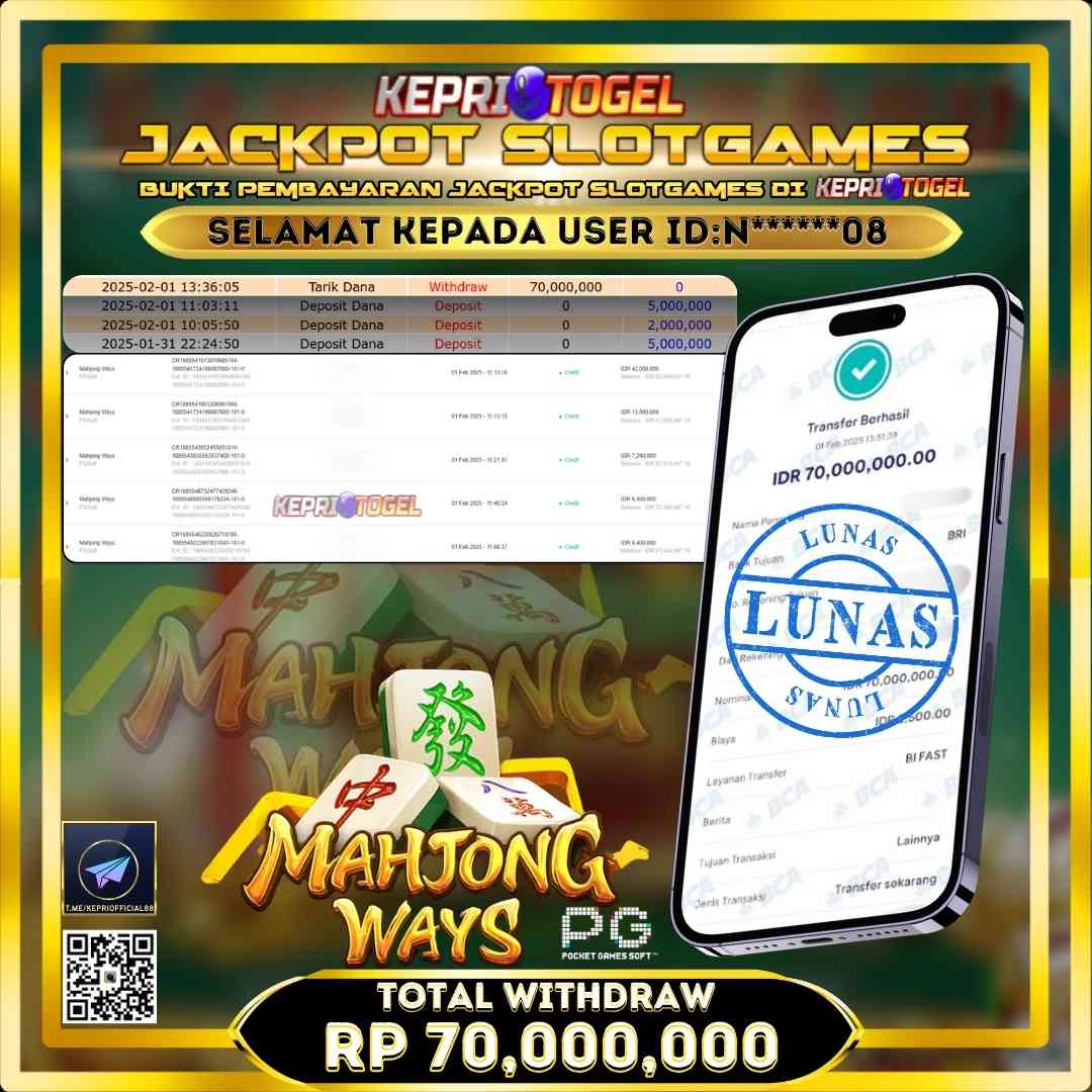 Kepritogel Jackpot Slot Mahjong Ways Rp70,000,000