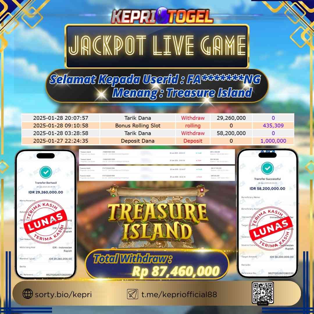 Kepritogel Jackpot Live Game Treasure Island Rp87,460,000