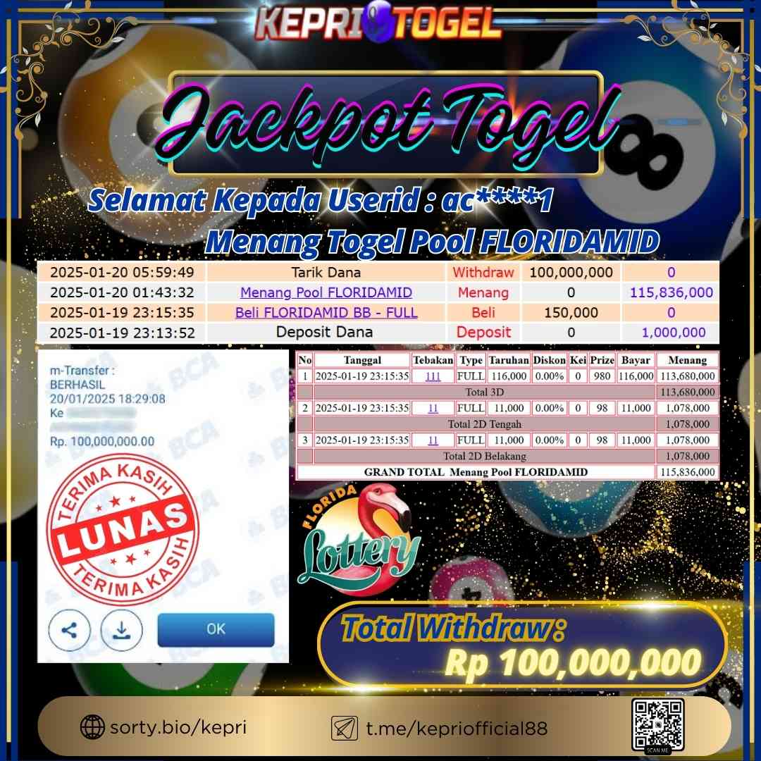 Kepritogel Jackpot Togel FLORIDAMID Rp100,000,000